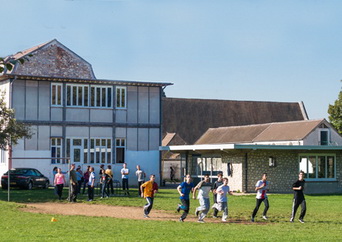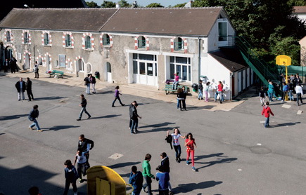 Une grande cour de récréation et un vaste espace vert permettent aux élèves de s’aérer et de pratiquer des jeux collectifs dans le cadre de l’option «sport renforcé» et en dehors des heures de cours. Le bénéfice qu’ils en tirent pour le renforcement de l’attention en classe est aujourd’hui reconnu.